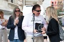 De izquierda a derecha, Gema y Ricardo, afiliados a la ONCE, y Carmen Camacho, vicepresidenta de SEMES