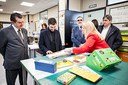 El ministro Bustinduy recibe explicaciones sobre el manejo de la máquina Perkins para escribir en braille